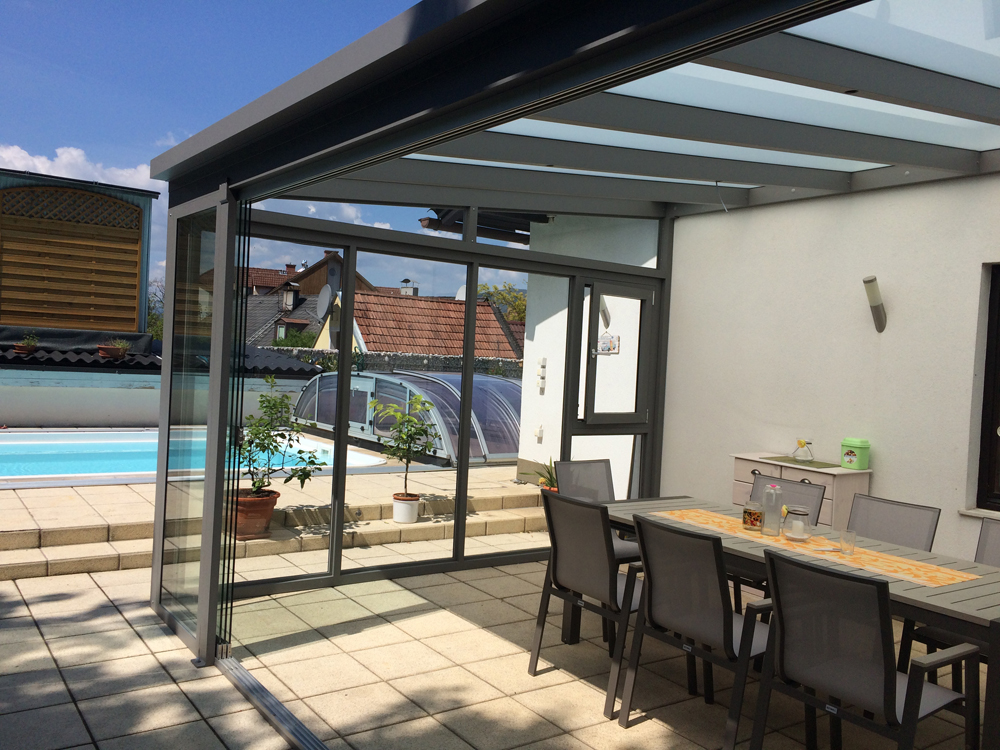 Ein Vordach schützt den Eingangsbereich Ihres Hauses im Bezirk Neunkirchen vor Wind und Wetter. Unsere hochmodernen Lösungen fügen sich mühelos in die bestehende Architektur des Gebäudes ein und erweisen sich als ausgesprochen stabil und bruchsicher. Ergänzend oder alternativ dazu kann man einen Windfang installieren.